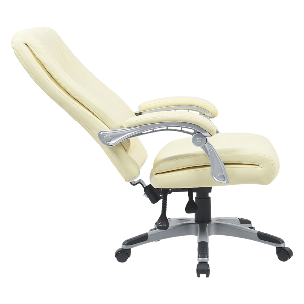Die chair’s smooth, glossy armrests are painted in a sophisticated silver-white finish, contributing to the overall modern aesthetic while offering durable and reliable support for the arms during long work hours.