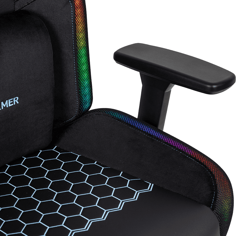 Ein weiterer großer Vorteil des RX-2084 sind die 3D-verstellbaren Armlehnen LED-Lichtleiste, 3D-Armlehne, PVC-Leder, Büro-Gaming-Stuhl . Für E-Sportler und Büroangestellte können die richtige Höhe und der richtige Winkel der Armlehne den Druck auf Arme und Schultern wirksam reduzieren. Die 3D-Armlehnen des Stuhls können in alle Richtungen verstellt werden, egal ob Vorwärtsausfahren, Zurückziehen, Anheben oder Herunterdrücken, sie können leicht erreicht werden, um den individuellen Bedürfnissen verschiedener Benutzer gerecht zu werden. Mit der ergonomisch gestalteten Rückenlehne und dem Sitzkissen kann die Wirbelsäule gut gestützt und die durch langes Sitzen verursachten Schäden am Körper verringert werden.